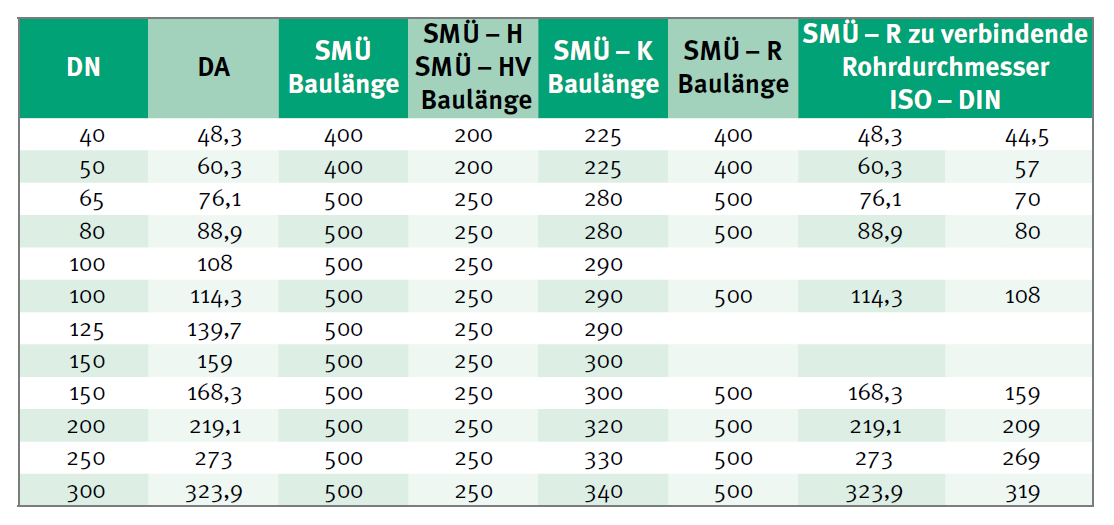 Typ SMÜ-R möglich. - Verbindung von Stahl- mit PE-Rohren mit Typ PEST – SMÜH