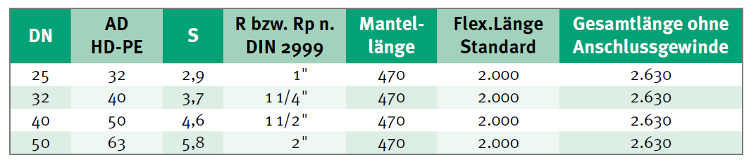 Ausgangsseitig auch mit PE-HD-Rohrende möglich.